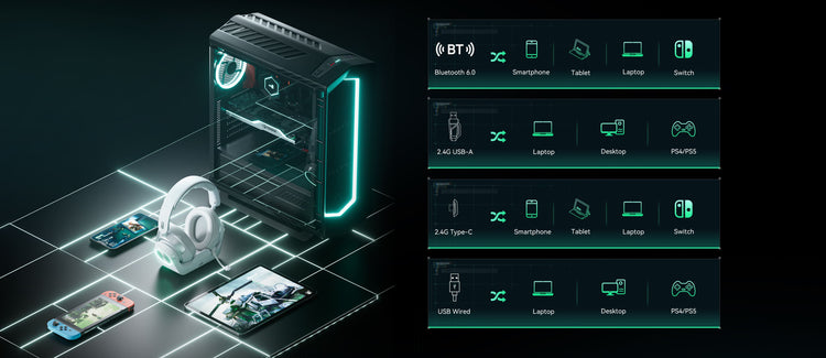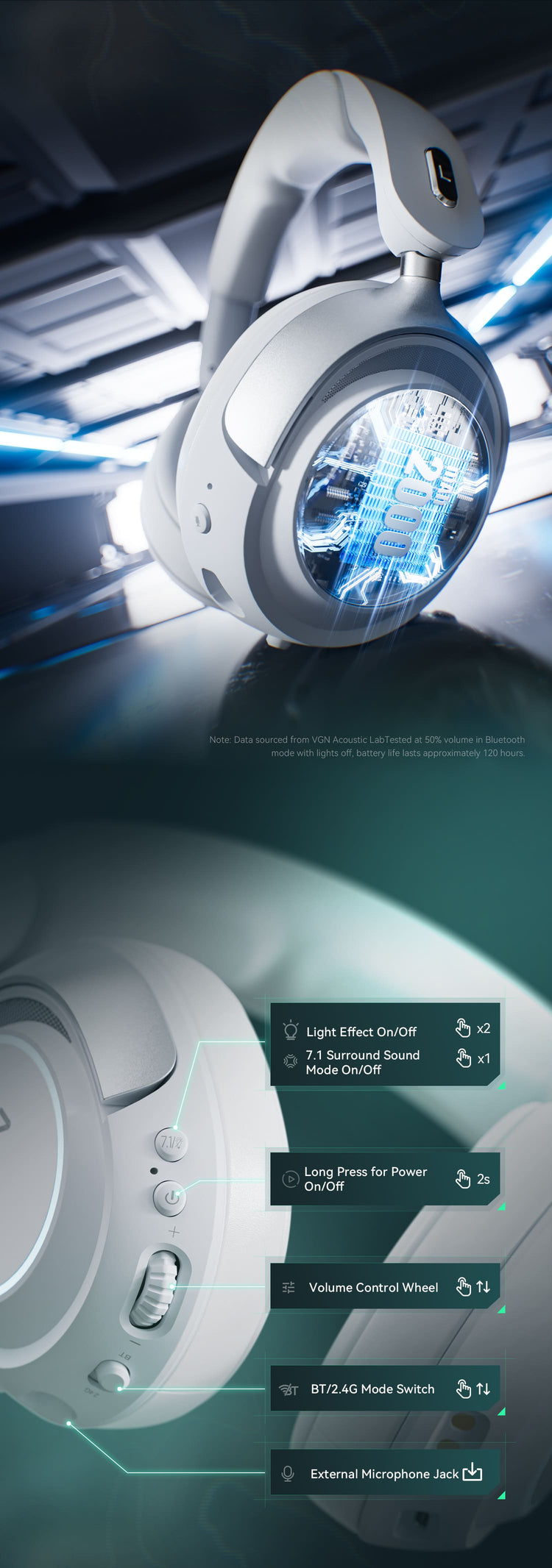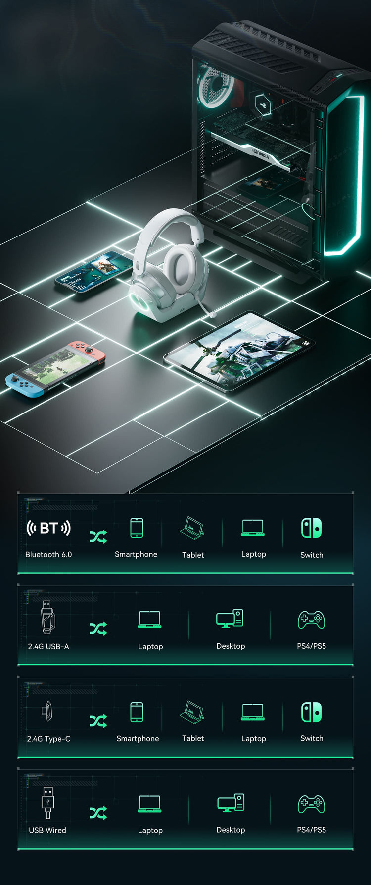 Der proprietäre Treiber ermöglicht die Ein-Klick-Voreinstellung mehrerer Spielparameter und unterstützt EQ-Anpassung, Beleuchtungssteuerung, Mikrofon-Geräuschreduzierung, Stimmerweiterung und vieles mehr. Leistungsstark und dennoch benutzerfreundlich sorgt er dafür, dass Sie jedes Match auf PC und Mobilgerät gewinnen.