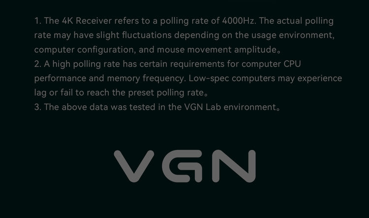 자체 개발한 VGN HUB: 모든 VGN 제품의 매니저. TYPE-C를 통해 4K 리시버를 PC에 연결하고, VGN HUB에서 호환되는 마우스와 페어링하여 2K(2000Hz)/4K(4000Hz) 사전 설정 폴링 속도를 해제하십시오. PNP 기술 덕분에 한 번의 페어링으로 다른 PC에서도 플러그 앤 플레이가 가능하며, VGN HUB는 백그라운드에서 실행되지 않습니다.