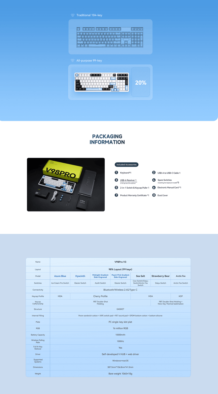 Custom 5-layer noise reduction filling for better feel and sound—eliminates cavity resonance and noise, with cleaner sound and smoother keystrokes.
