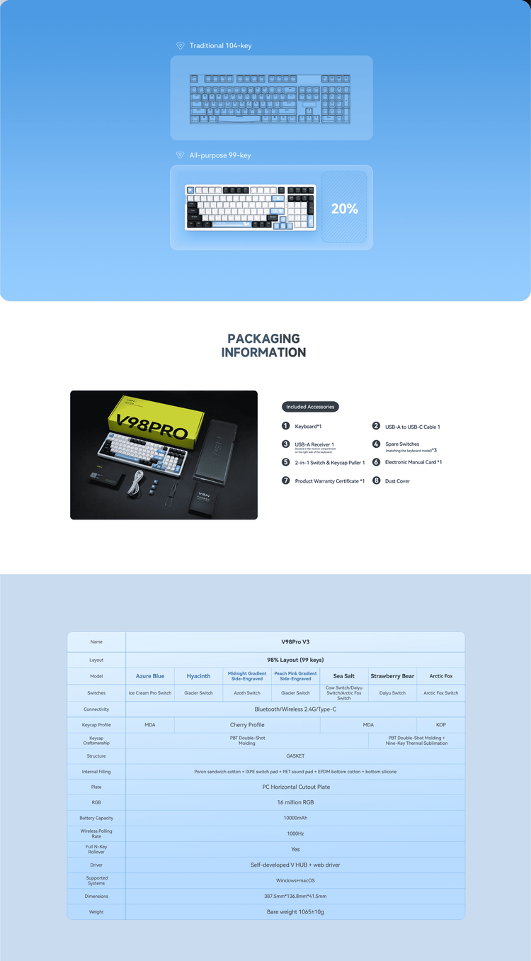 Continuando os clássicos interruptores, o novo modelo de ponta é lançado com grande entusiasmo – totalmente hot-swappable para personalização fácil, com estabilizadores personalizados calibrados de fábrica para teclas mais precisas e um som mais focado.
